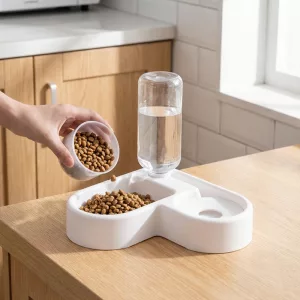 Gamelle 2-en-1 et distributeur d’eau automatique pour chien – Station d’alimentation pour animaux