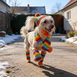 Des rayures vives et des pompons font sourire où que vous alliez. Vos proches adoreront voir votre animal habillé.