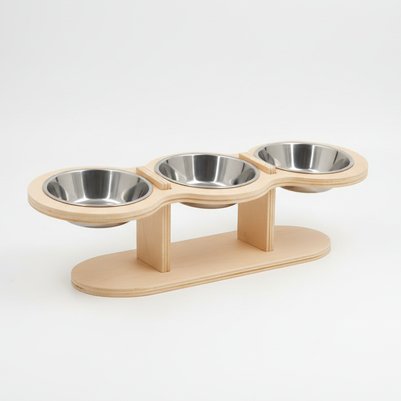 Les gamelles Primdog gardent la nourriture à l’angle parfait pour manger. L’acier inoxydable rend le nettoyage rapide et simple au quotidien. Trois bols offrent de la variété aux animaux et moins de désordre. Un support en bois maintient le tout bien stable et apporte une touche de style à l’intérieur.