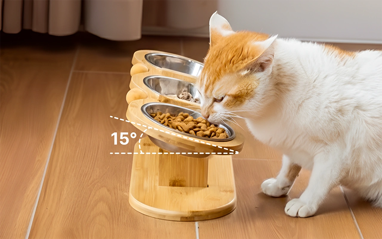 Manger avec une inclinaison aide les chats à avaler facilement et confortablement. Cela réduit les risques d’étouffement, de ballonnements et aide leur corps à absorber les nutriments.