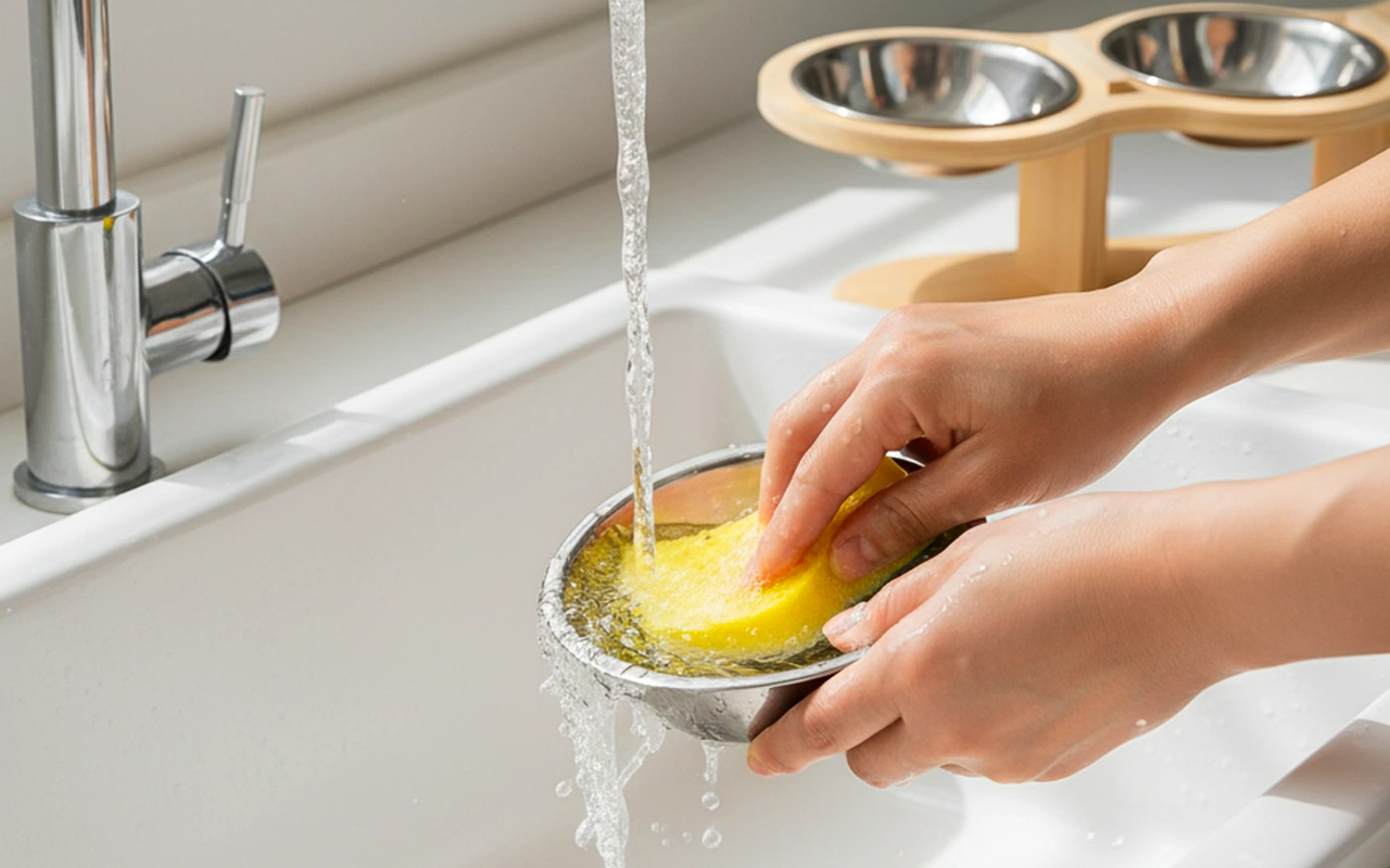 Le matériau en acier inoxydable résiste aux taches tout en restant hygiénique. Les bols s’enlèvent facilement pour un lavage rapide en quelques secondes.
