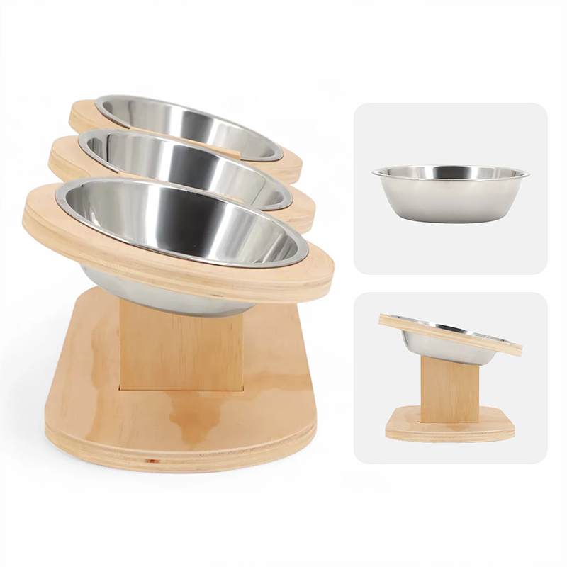 Lot de 3 gamelles inclinées en acier inoxydable pour chat avec support en bois