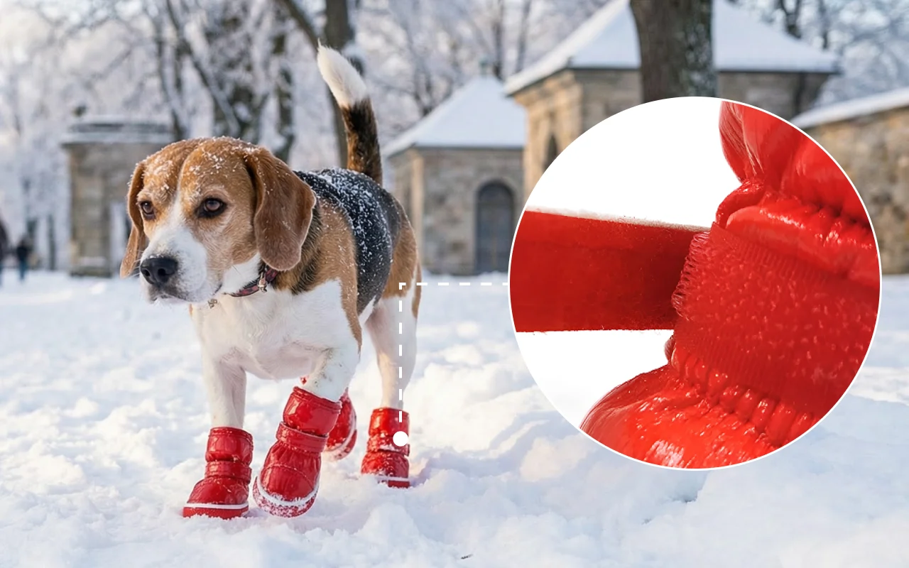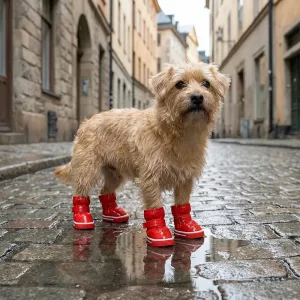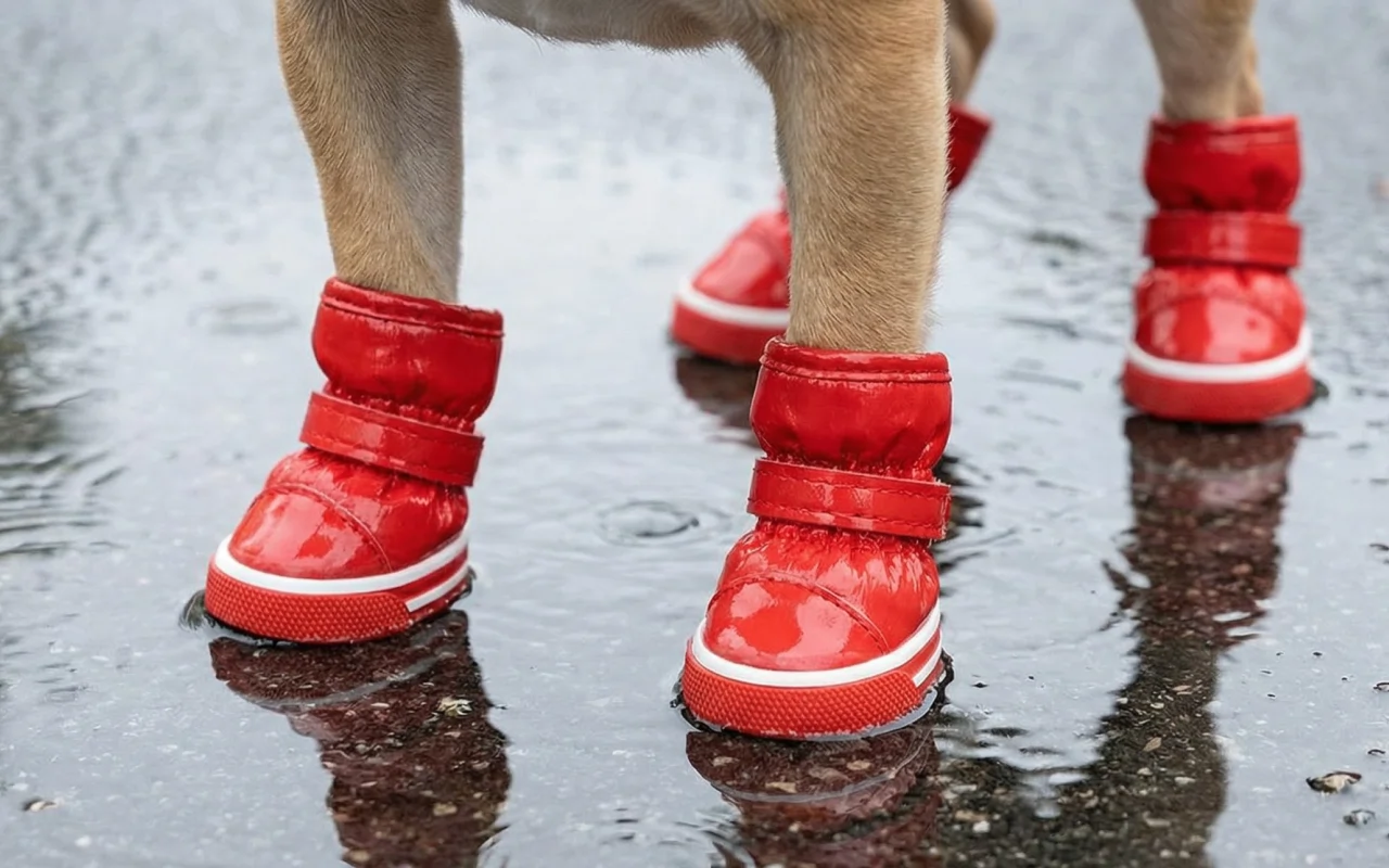 Les promenades restent agréables même sous la pluie ou la neige. Les chaussures Primdog bloquent l’eau et protègent les pattes dans les rues boueuses.