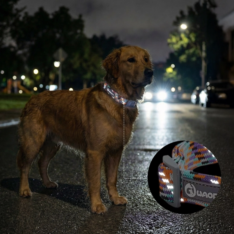 Mon chien est toujours prêt à courir, et ce collier suit son rythme. J’adore la tranquillité d’esprit apportée par la bande réfléchissante, surtout après le coucher du soleil.