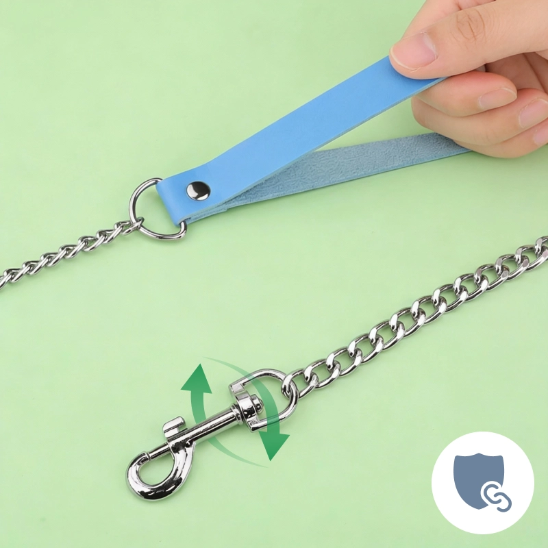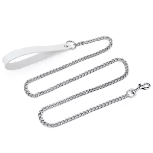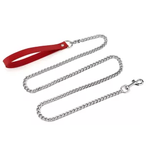 Laisse pour chien en alliage avec poignée en cuir