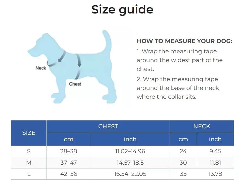 Veuillez vous assurer de mesurer votre chien pour une taille précise avant l’achat afin d’assurer un ajustement parfait.