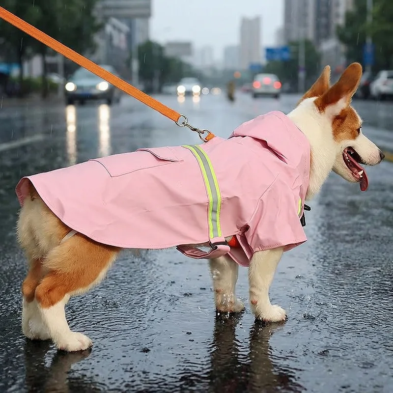 Imperméable pour chien réfléchissant et lumineux avec capuche