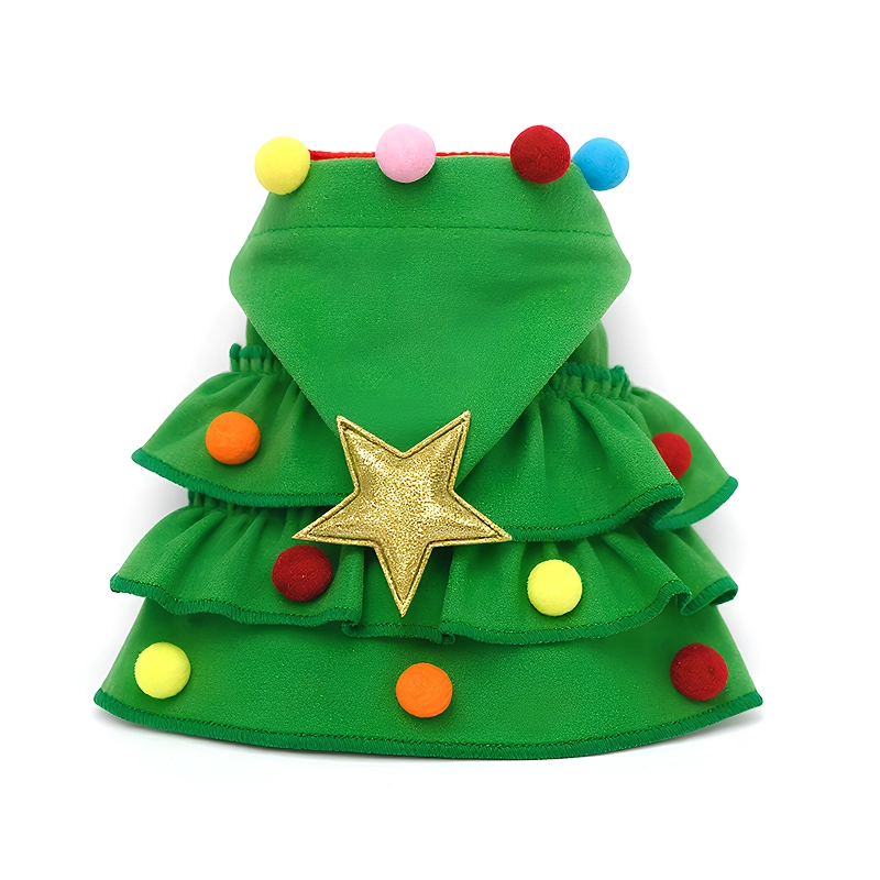 Costume Cape de Noël pour Chat en forme de Sapin avec Étoile