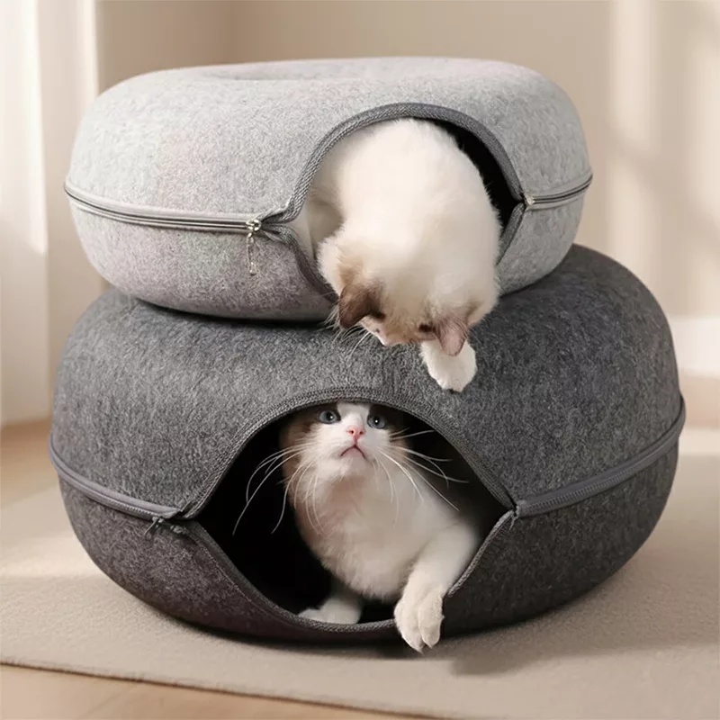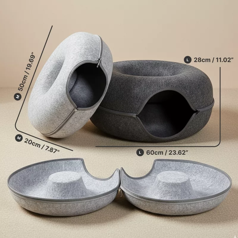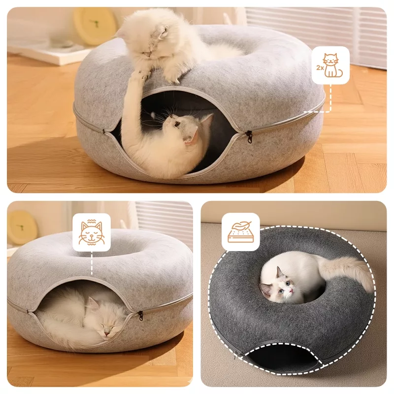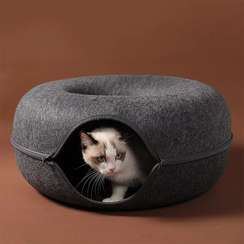 Lit tunnel surélevé en forme de beignet pour chat