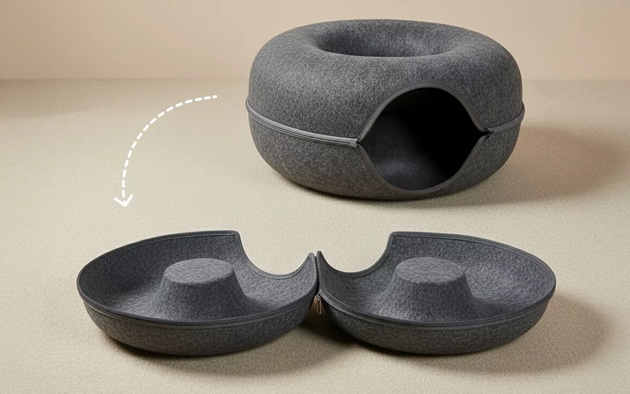 Ce design ingénieux divertit vos compagnons à fourrure. La construction robuste en feutre protège contre les griffes acérées et les poils indisciplinés. La séparation rapide par fermeture éclair facilite le nettoyage et l'installation à chaque fois.