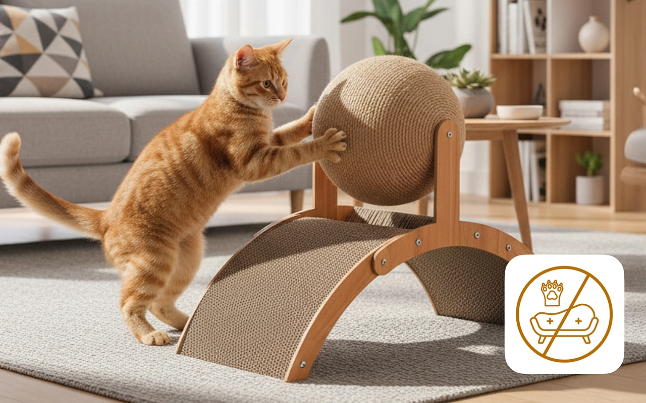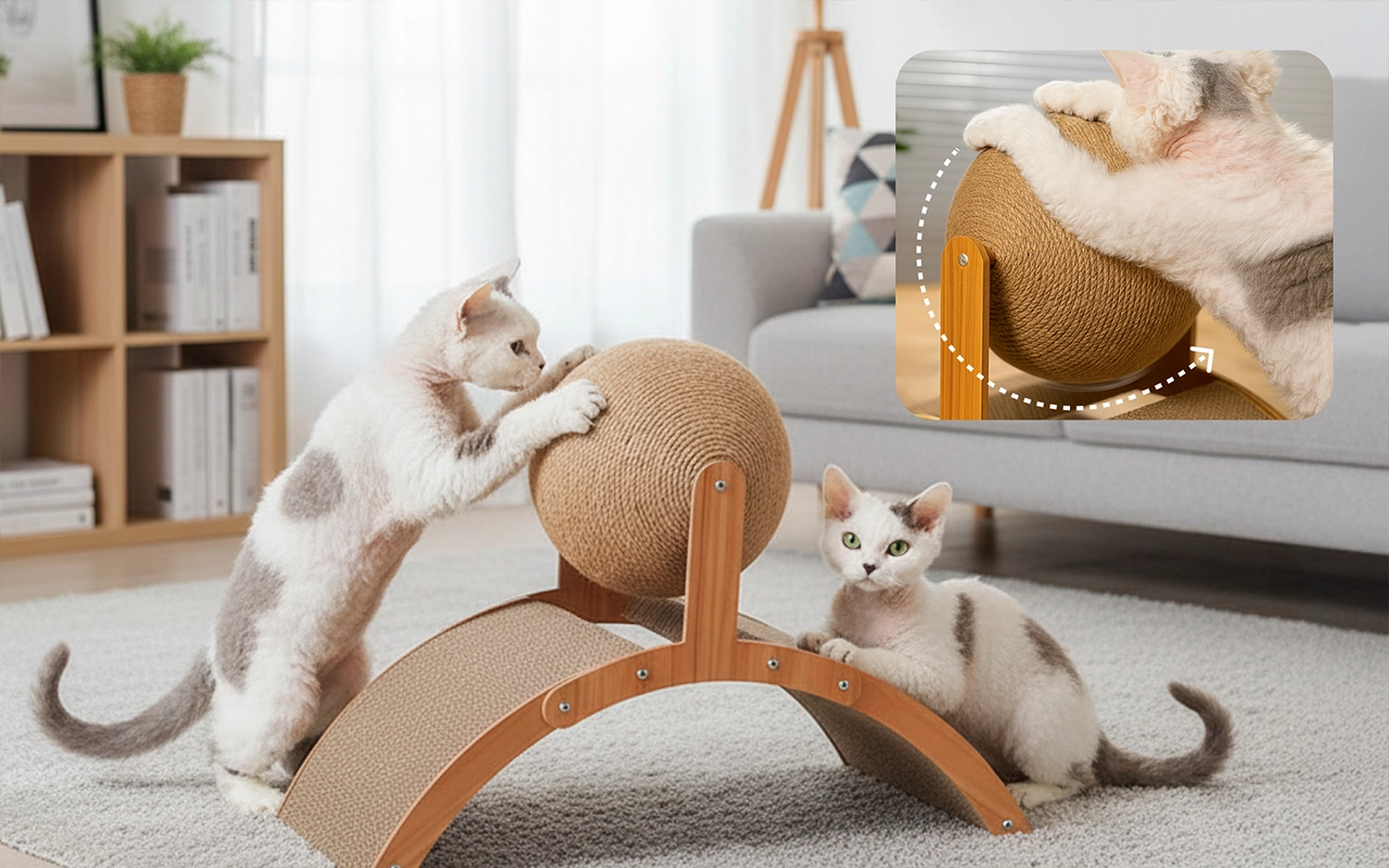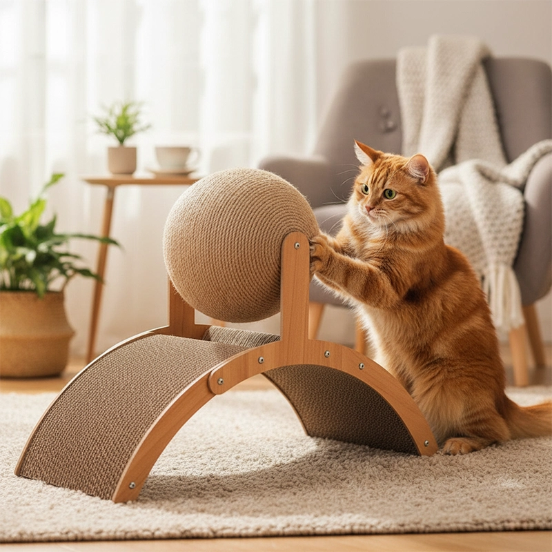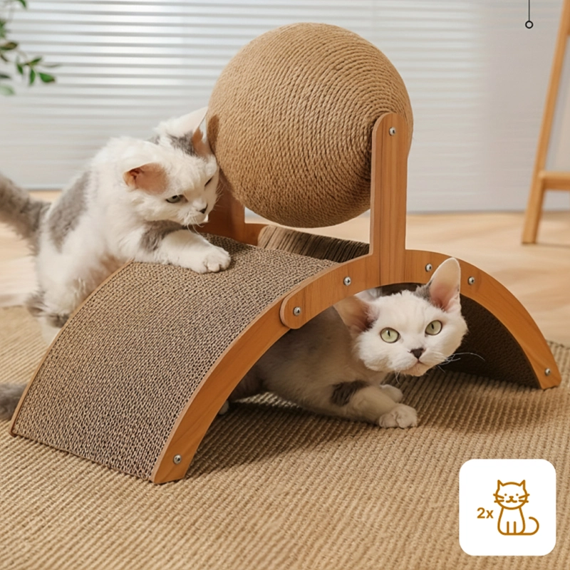 Le pont courbé et la balle tournante offrent un divertissement sans fin. Les chats explorent, griffent et se détendent à chaque utilisation.