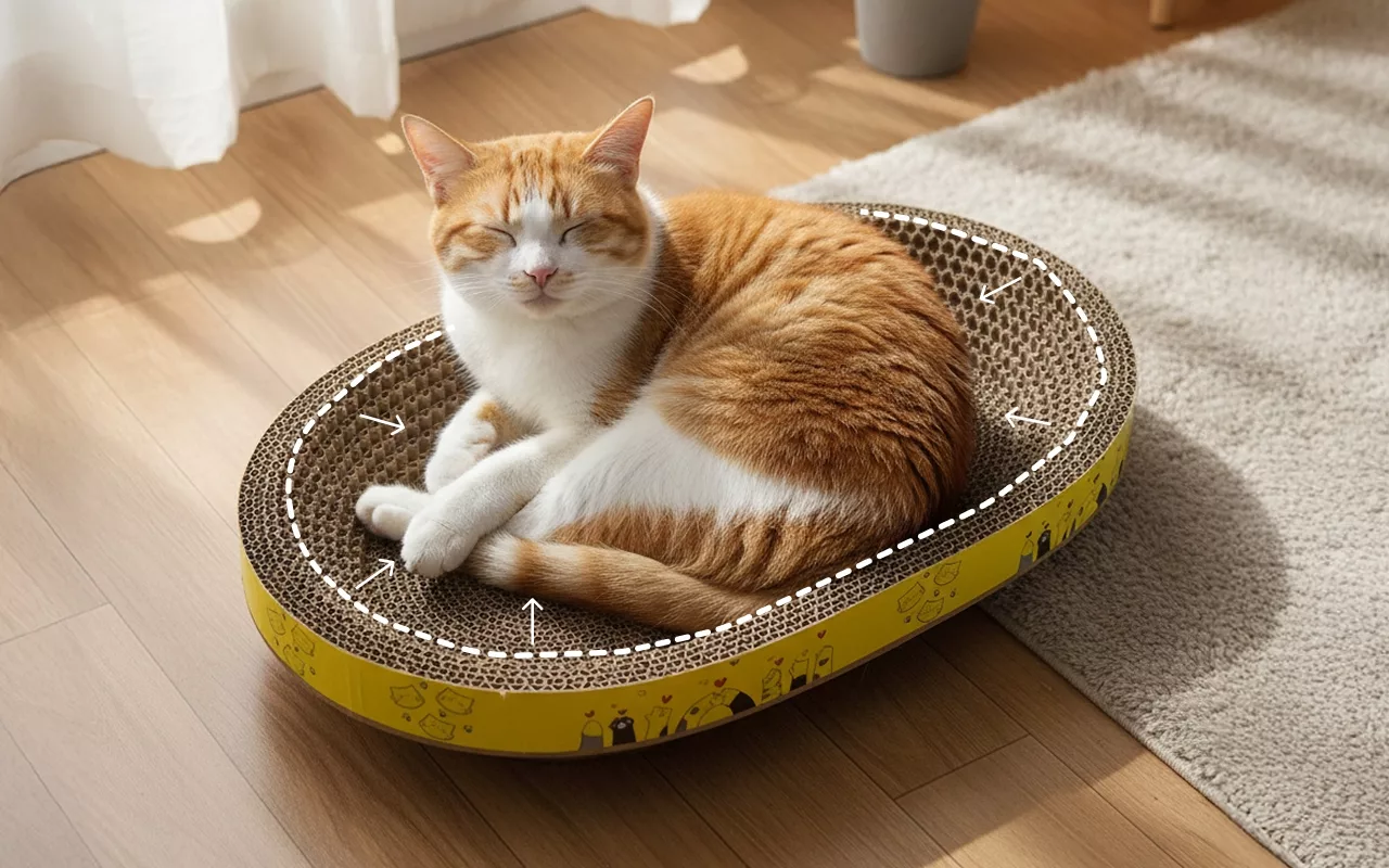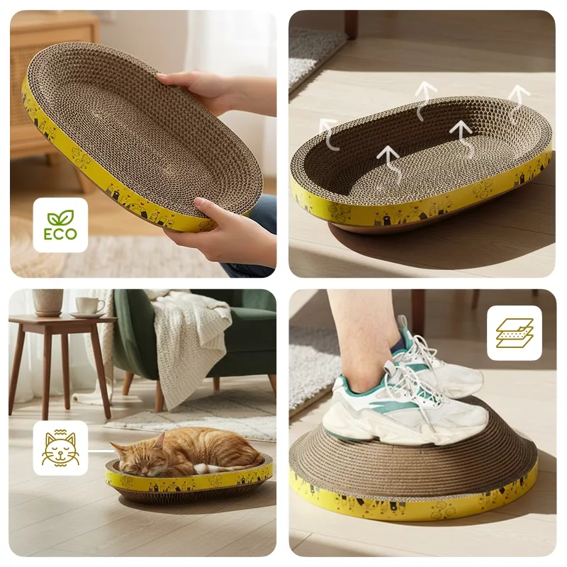 Nous avons acheté ce lit à griffer pour notre tigré. Il aime se blottir à l’intérieur et aiguiser ses griffes. Plus de coussins déchirés !
