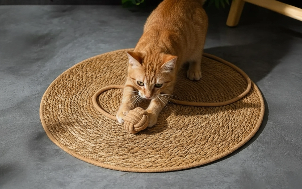 Tapis Griffoir en Sisal pour Chat, Protecteur de Meubles avec Balle pour le Sol