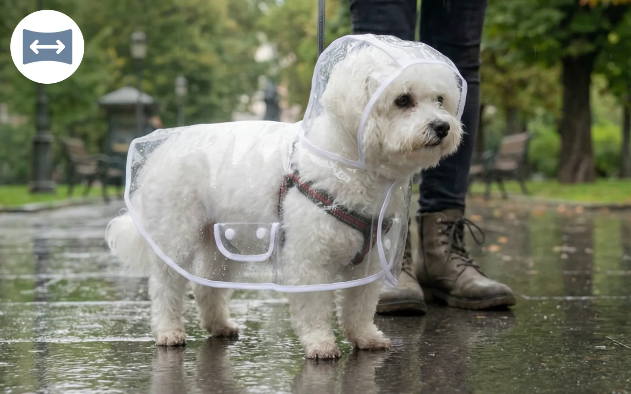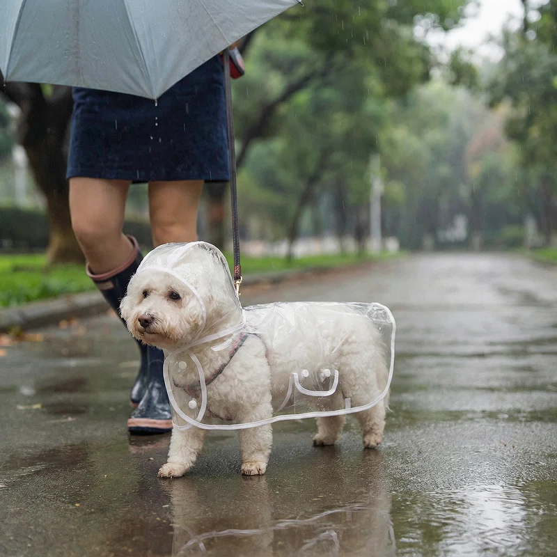Les journées pluvieuses n'arrêtent jamais les balades heureuses en plein air. L'imperméable transparent Primdog protège les animaux de l'eau tout en restant léger. Un ajustement réglable garantit le confort de chaque race.