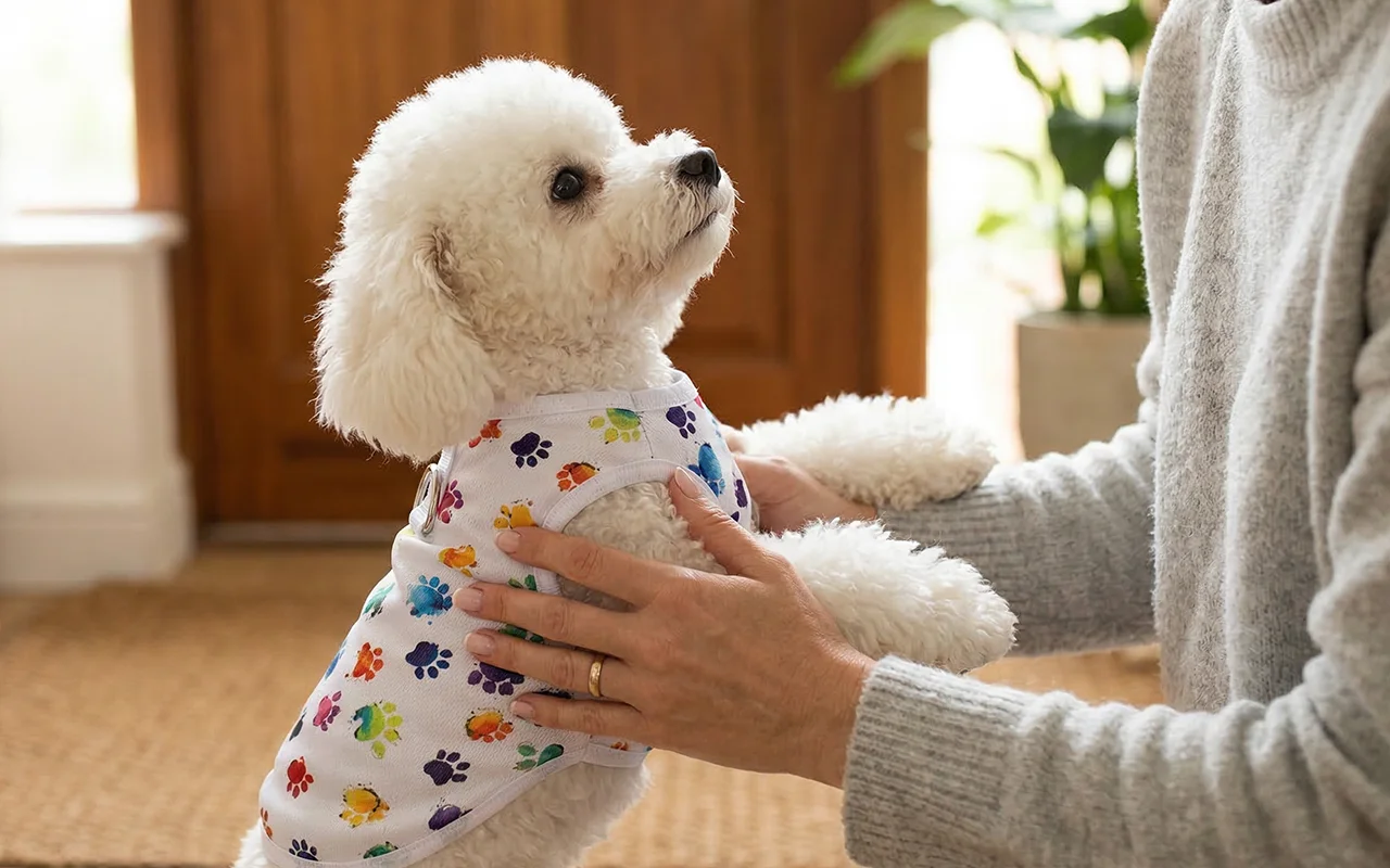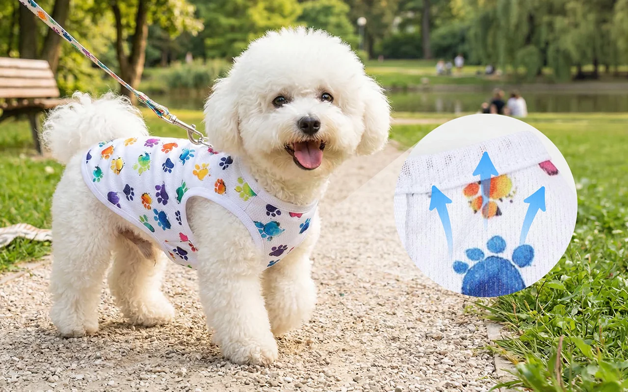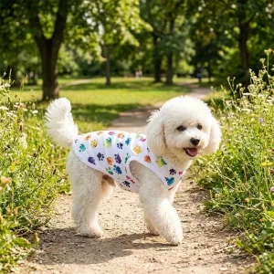 Le gilet Primdog permet aux animaux de profiter de longues promenades confortablement partout. Le tissu léger offre une couverture douce sans provoquer d'irritation. Les empreintes de pattes colorées ajoutent une touche amusante à chaque sortie. Parfait pour le temps ensoleillé et les après-midis de jeux ensemble.
