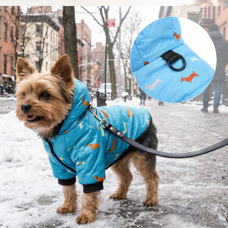 Manteau pour chien mignon doublé, imperméable, avec capuche et boutons-pression pour temps froid