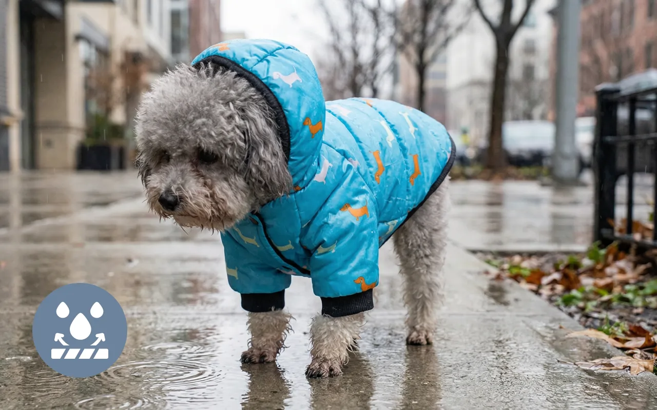 Les couches imperméables gardent le pelage sec lors d'averses soudaines. Fini les manteaux mouillés ou boueux après une sortie au parc sous la pluie.