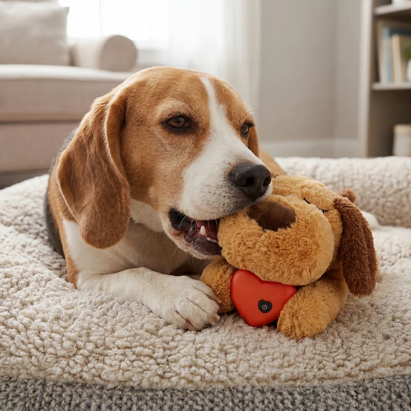 J’ai adopté un beagle sauvé, et il avait peur les premières nuits. Grâce au jouet avec battement de cœur, il s’est adapté très rapidement et dort toute la nuit.