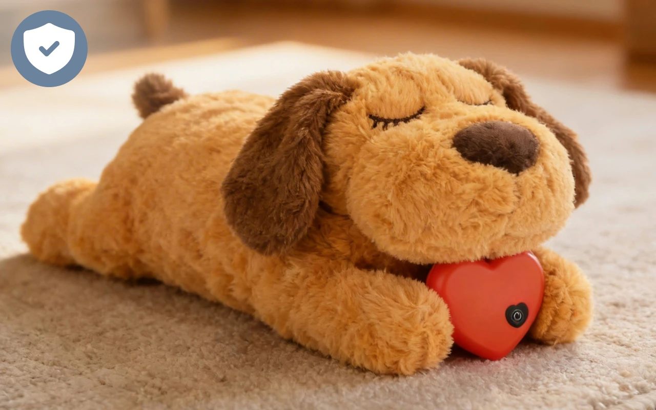 Notre nouveau chiot a fait de ce jouet son meilleur ami. Le doux son du battement de cœur l’apaise, surtout lors des orages. Nous n’avons pas eu de nuit blanche depuis.