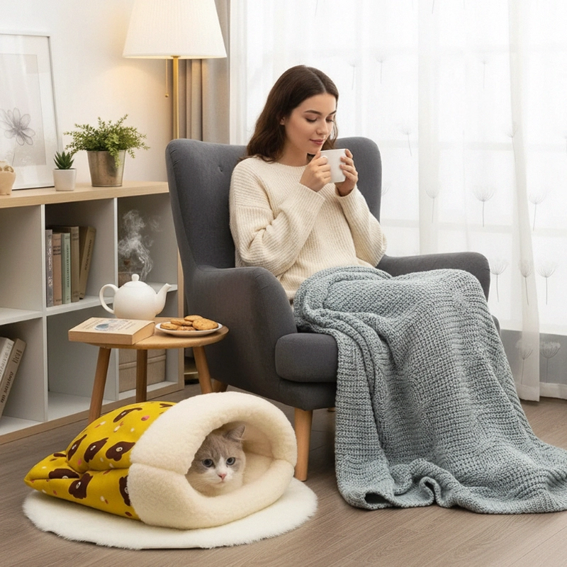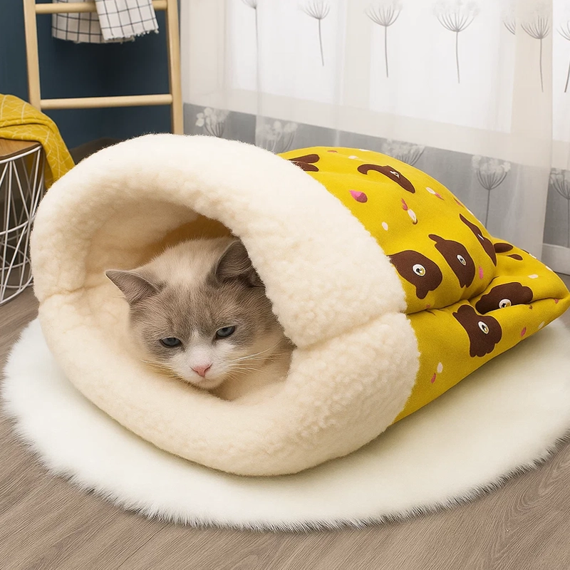 Sac de couchage douillet fermé pour chat en peluche mignonne
