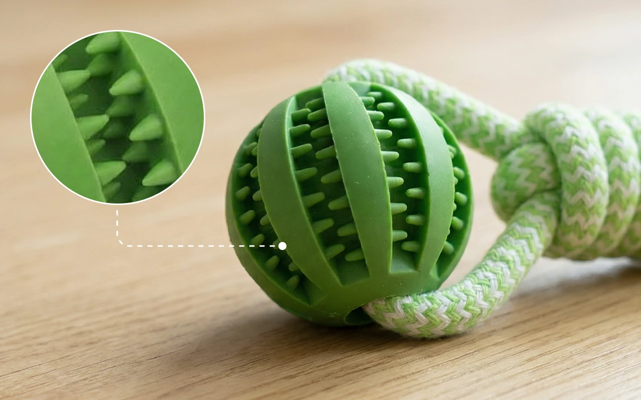 Le caoutchouc naturel résiste aux perforations, afin que les animaux restent en sécurité en jouant. La conception non toxique protège les animaux des produits chimiques nocifs pendant l’utilisation.