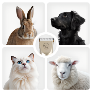 NOTE : Si votre animal a des poils longs et épais, vous devez d’abord les couper plus courts avec des ciseaux, sinon la tondeuse peut se bloquer et ne pas fonctionner correctement.