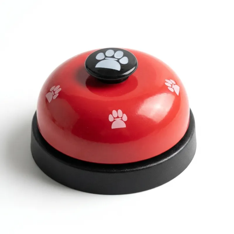 Nous gardons la sonnette près de la cuisine. Les deux chiens ont vite compris qu’ils devaient taper pour le dîner. Son clair, base stable et plus de miaulements bruyants.