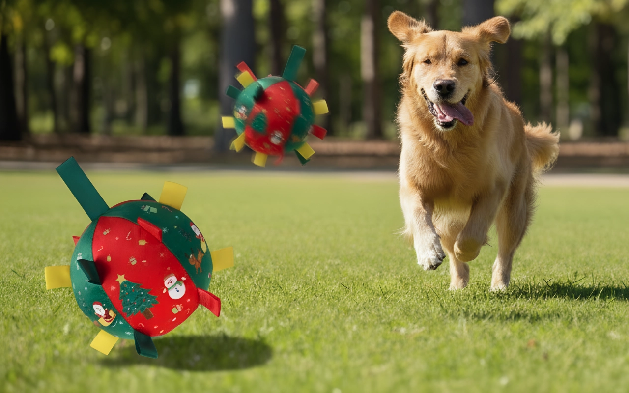 15 avis pour Jouet interactif de Noël pour chien Ballon de football avec clochette