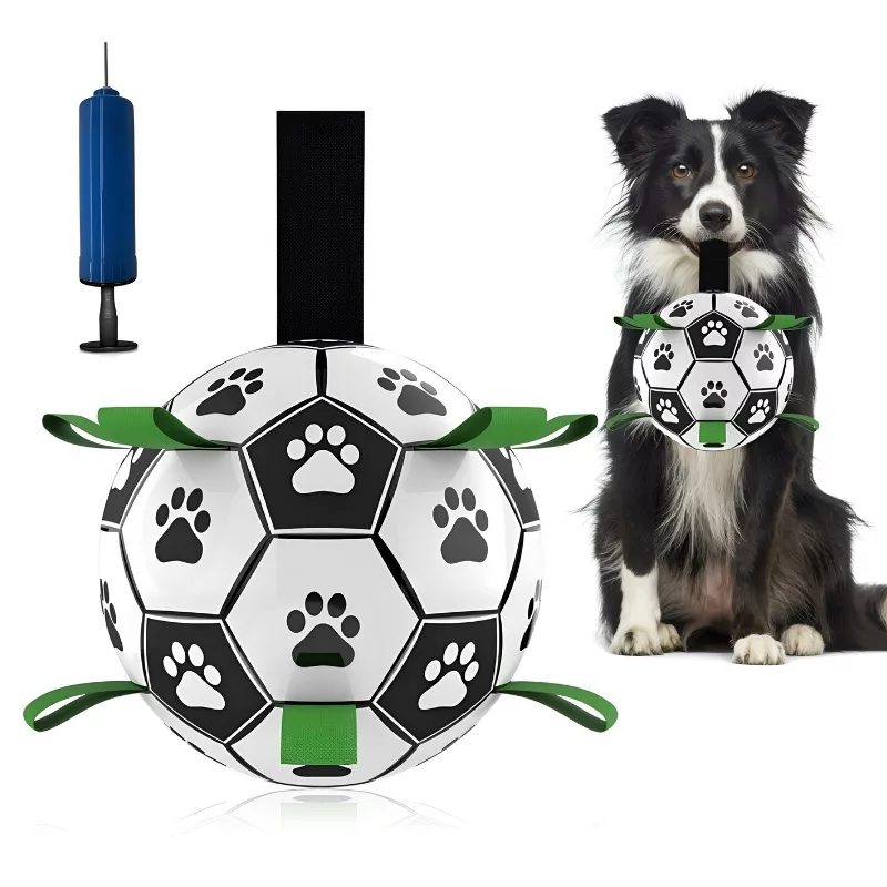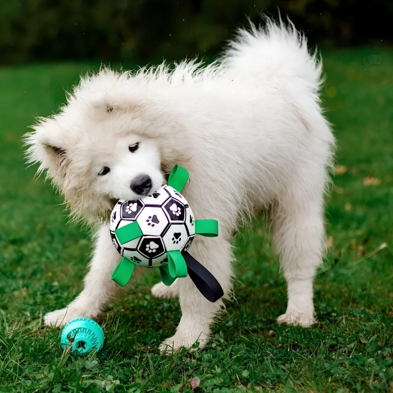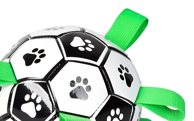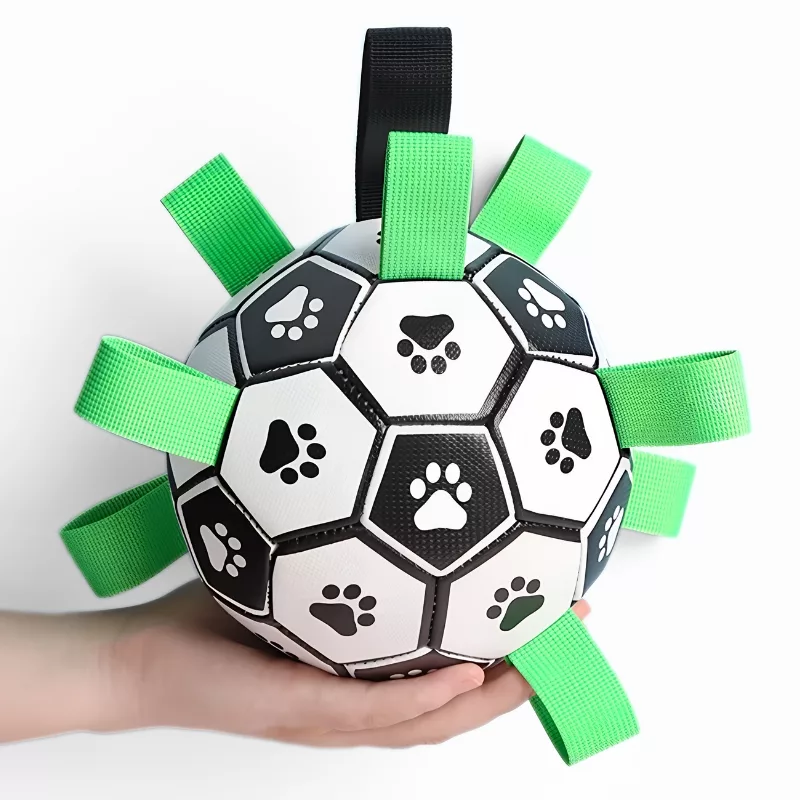 Mon chien devient complètement fou avec ce ballon de football. Les languettes de préhension rendent le jeu de tir à la corde tellement plus facile. Meilleur moment de jeu jamais eu !