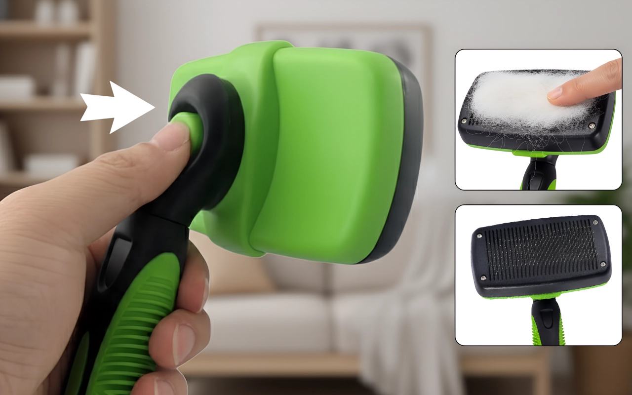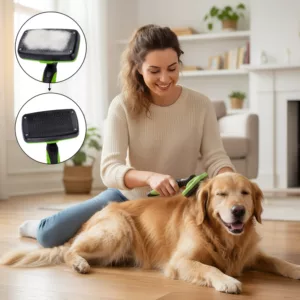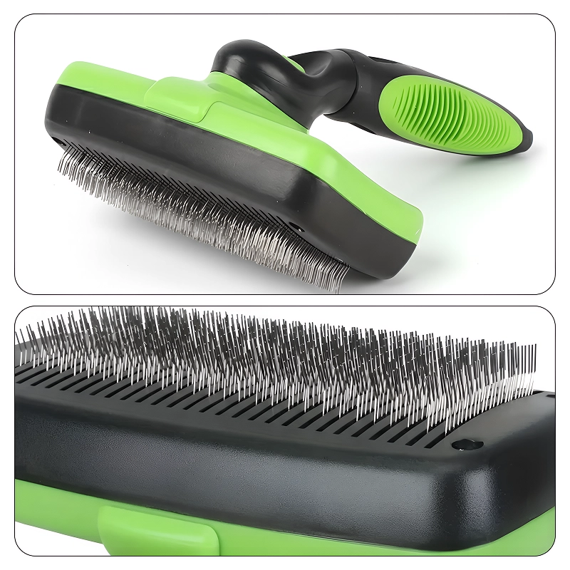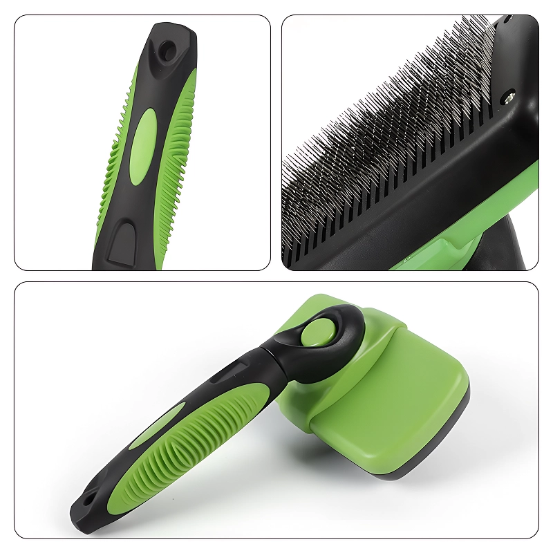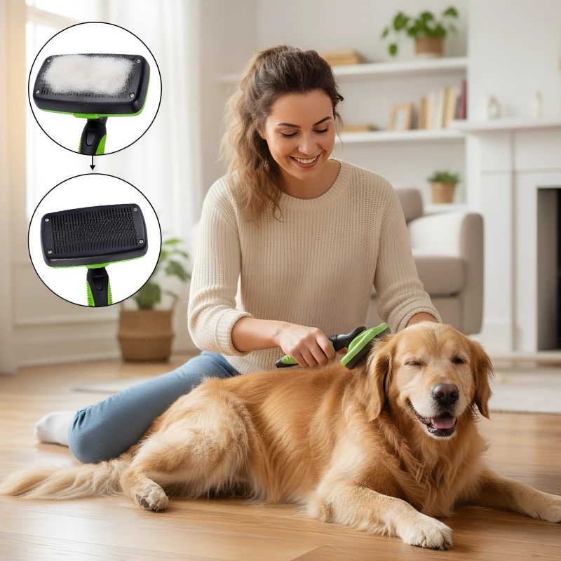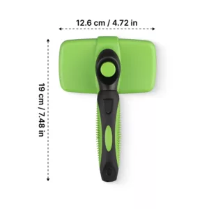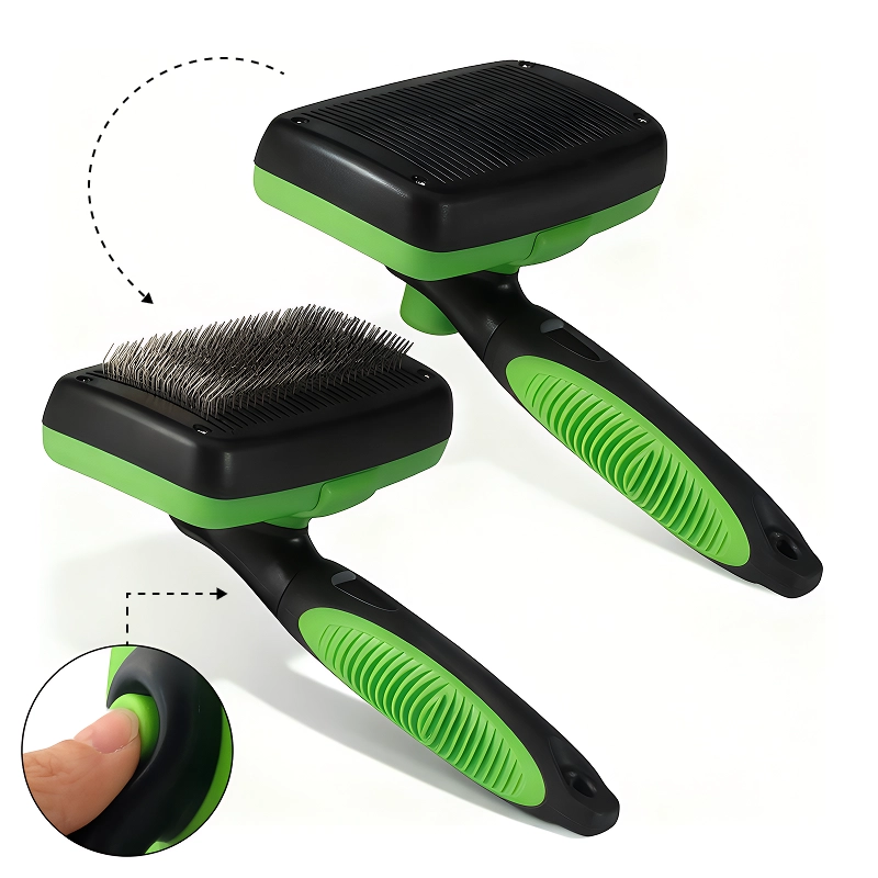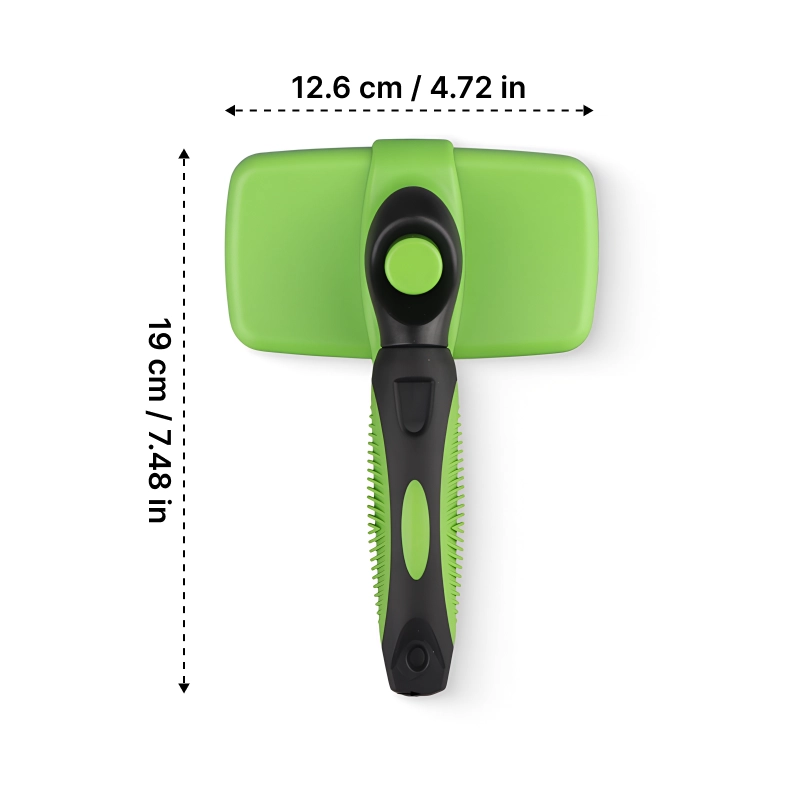 Mon caniche déteste la plupart des brosses mais celle-ci est suffisamment douce. Le système de nettoyage d’un seul geste est génial—facile à utiliser et ça ne tire pas sur ses poils.