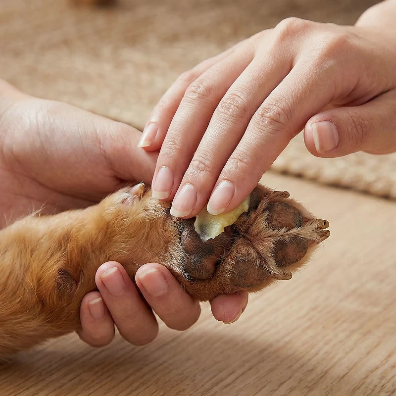 Les pattes de mon golden retriever devenaient rugueuses en hiver, mais ce baume les garde douces et en bonne santé. Cela ne le dérange pas du tout !