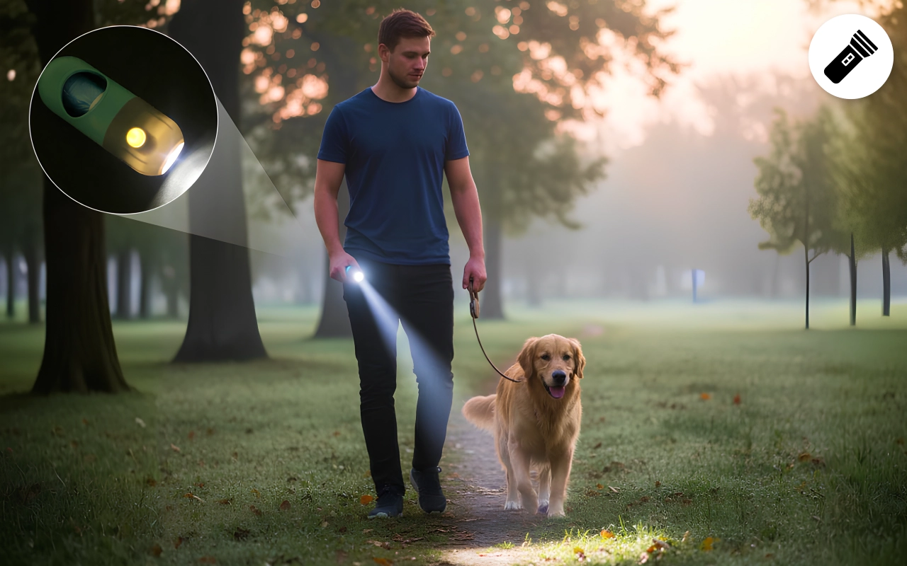 Le meilleur, c’est de prendre soin du parc pendant que je promène mon chien. La LED facilite tout, et les sacs sont vraiment robustes.