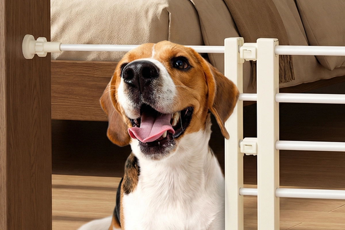 Cette petite barrière garde mon beagle dans le couloir, là où il doit être. Plus besoin de lui courir après dans la maison ! Très content de la facilité d’installation.