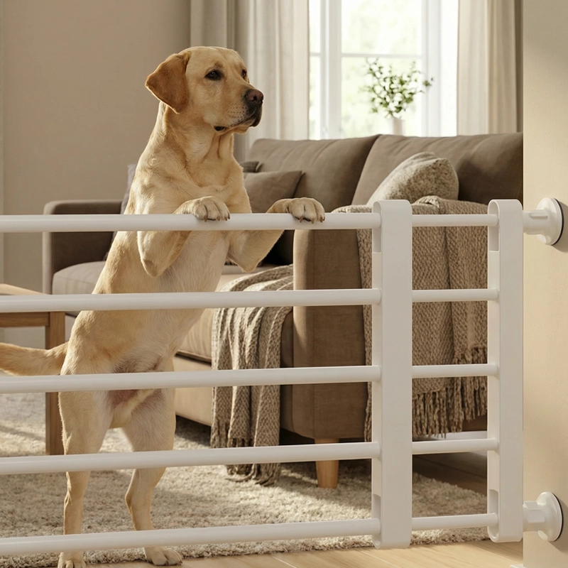 J’ai été surpris par sa robustesse ! La barrière tient très bien en place même quand mon golden retriever s’appuie dessus.
