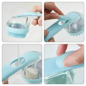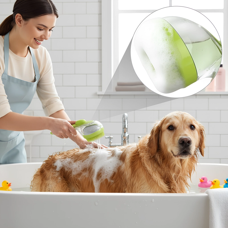 Brosse de Bain pour Chien en Silicone avec Distributeur de Shampoing et Manche Long