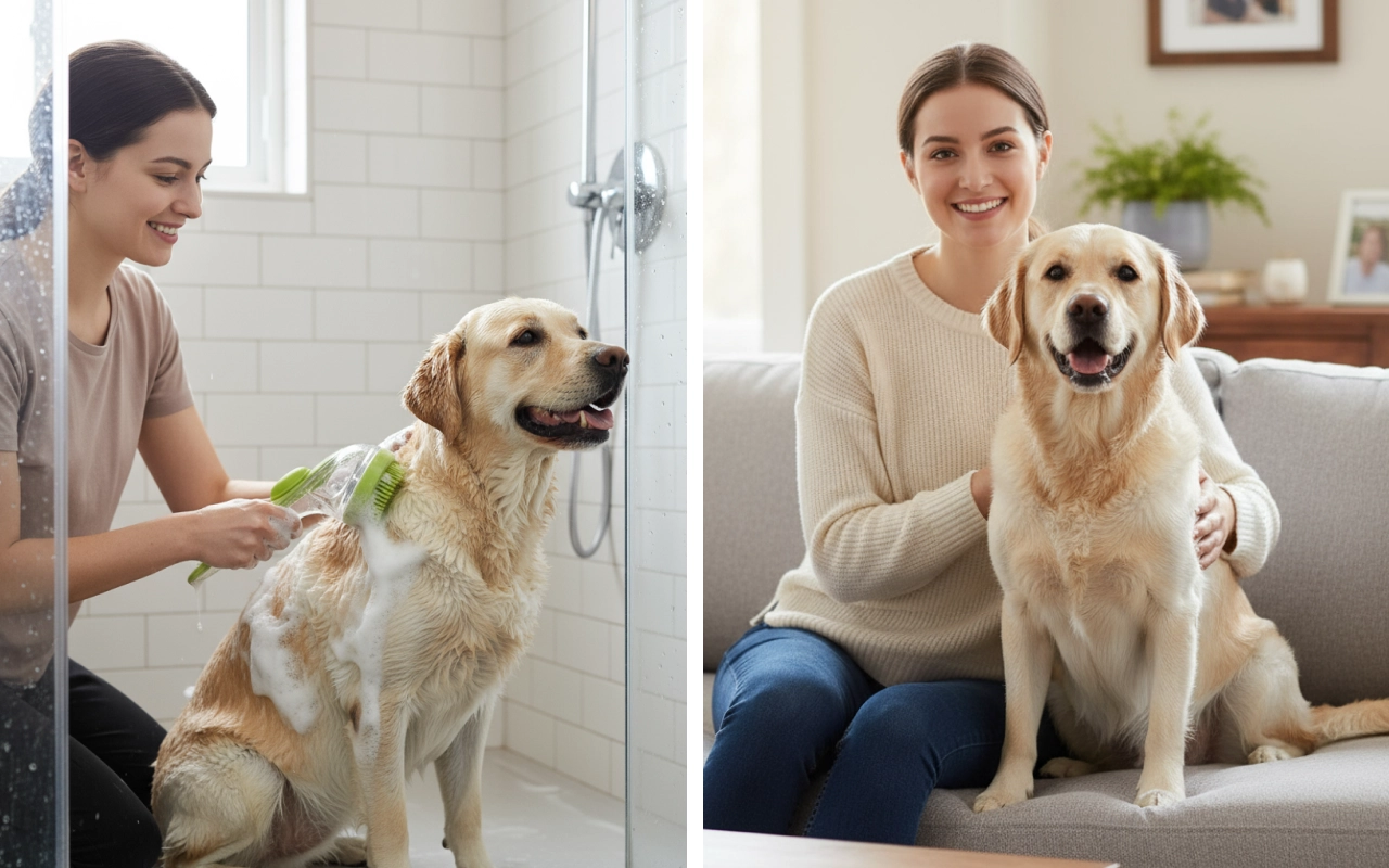 Elle rend le bain tellement plus facile et rapide. Mes mains restent sèches, le long manche permet d’atteindre partout, et mon chien est particulièrement propre.