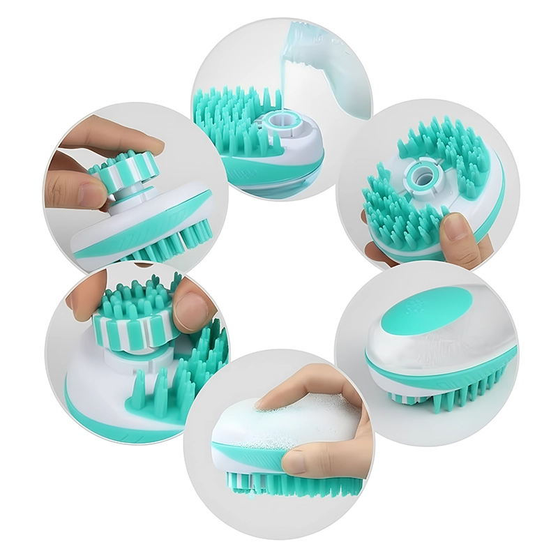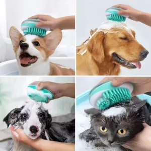 Brosse de bain pour chien en silicone avec distributeur de shampooing