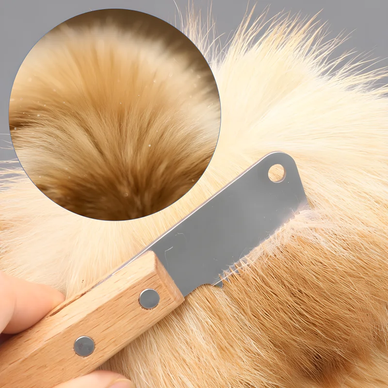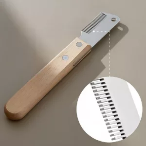 Couteau d’épilation pour chien – Outil de toilettage et retrait de poils avec manche en bois