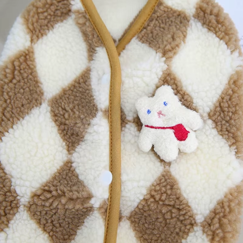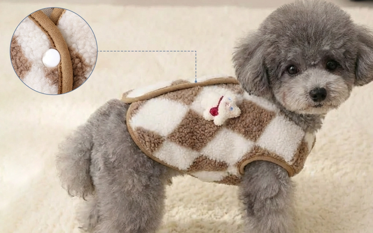 Mon petit chien reste tellement au chaud avec cette veste ! Les boutons-pression la rendent très facile à mettre le matin, et le motif à carreaux la rend encore plus mignonne sur les photos.