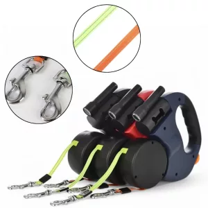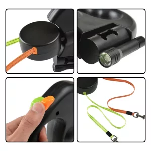 Laisse Double Rétractable pour Chien avec Lampe de Poche
