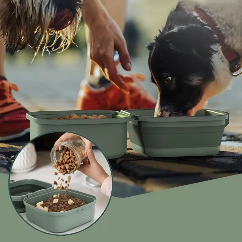 J’adore ce double bol pour les randonnées ! Mes deux chiens peuvent manger et boire en même temps. Facile à nettoyer et je le range juste dans le sac après.