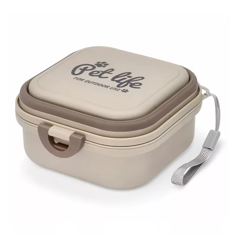 Vraiment satisfaite de ce bol de voyage pour mon boxer. La nourriture d’un côté, l’eau de l’autre. Se plie rapidement et semble assez durable.
