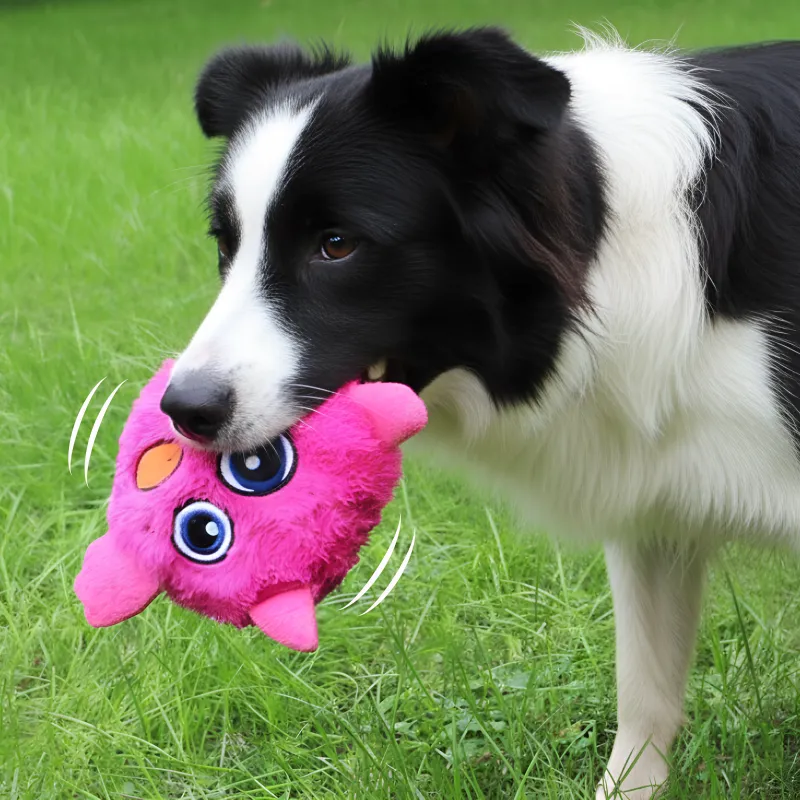 Je suis impressionnée par le temps que mon chien passe avec ce jouet en peluche ! Il saute partout, même quand je ne suis pas là. Les couleurs vives me permettent de la retrouver facilement.