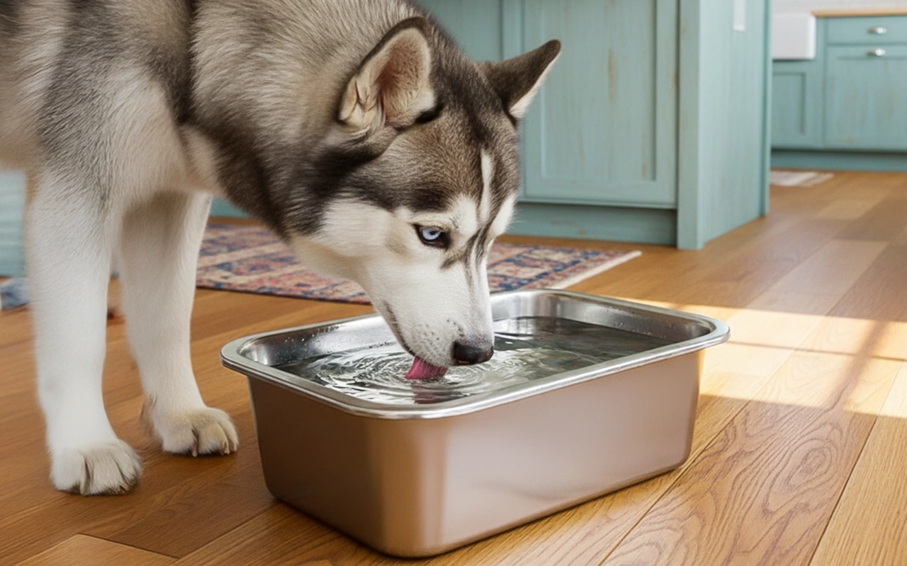 Notre berger allemand boit beaucoup et cette gamelle la satisfait pleinement. J’aime l’apparence sur le sol de la cuisine, propre et brillante.