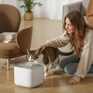 L’eau qui coule attire ma chatte curieuse et l’encourage à boire. Je ne remplis plus constamment des bols ennuyeux, ce qui est super !
