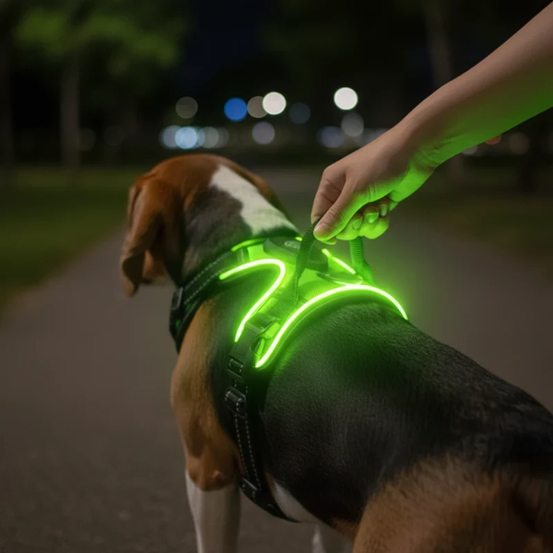 Nos promenades sont tellement faciles depuis que nous utilisons ce harnais. Les lumières permettent aux voitures de nous repérer tout de suite, et mon chien reste au frais et à l’aise.
