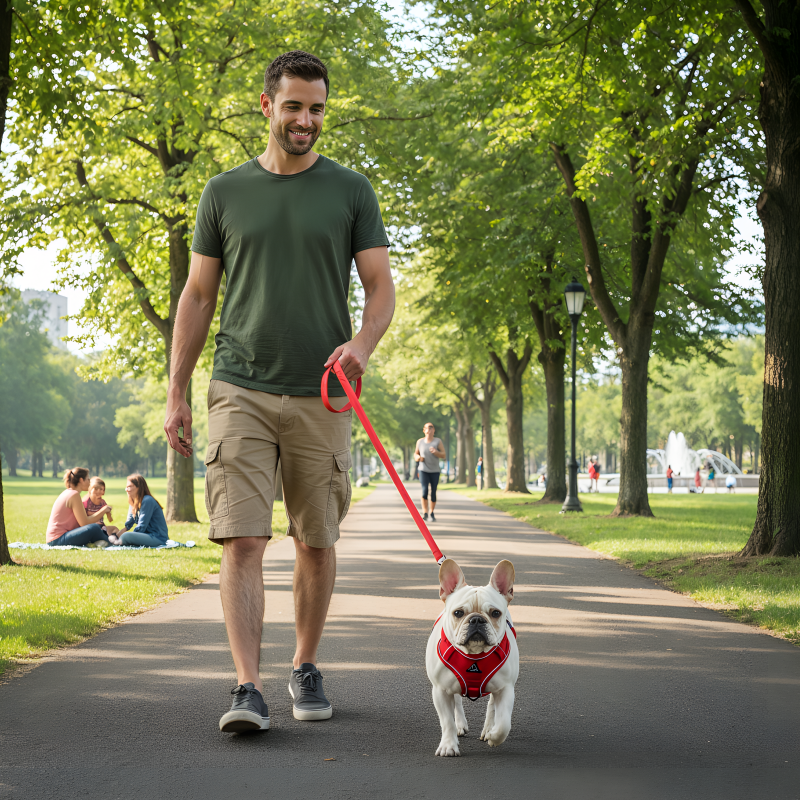 Chaque promenade semble sécurisée. La laisse est solide, les boucles tiennent bien et la couture est réfléchissante, donc les voitures peuvent nous voir après la tombée de la nuit. Je recommande vivement pour les quartiers animés.