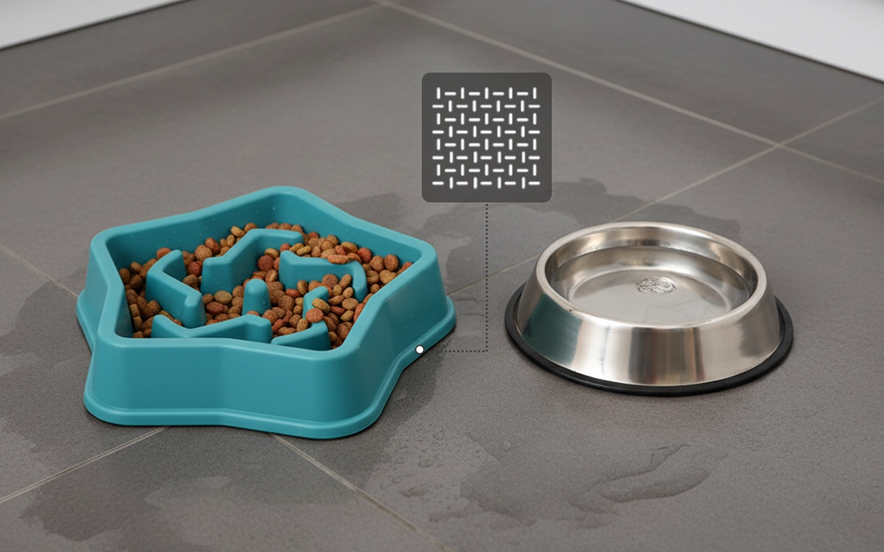La gamelle Primdog utilise un astucieux labyrinthe qui sépare la nourriture. Manger trop vite peut faire souffrir le ventre de votre ami et provoquer des étouffements. Chaque bouchée est ralentie pour une déglutition plus facile au quotidien. Votre animal appréciera l'heure du repas avec moins de saleté.