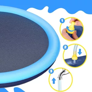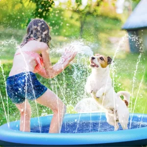 Mon labrador adore pataugeoire ! Il court à travers les jets d’eau et aboie de bonheur. Le montage a été vraiment rapide et c’est parfait pour les après-midis chauds.