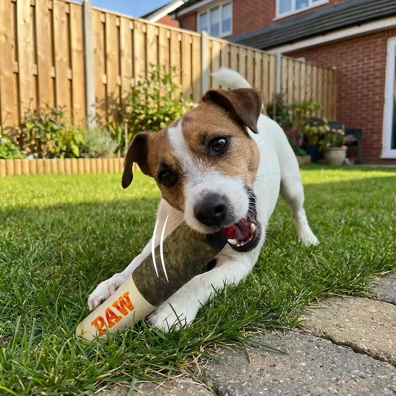 Mon chien devient fou avec ce jouet cigare qui couine tous les jours. C’est tellement drôle de le voir défiler avec, et le tissu doux est délicat pour sa bouche.